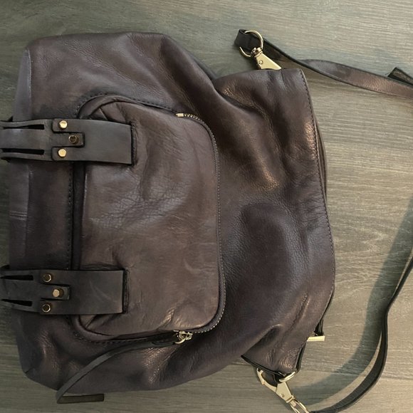 she+lo hobo bag, 100% thick leather, 1 zip, 3 interior pockets; 1 zip exterior pocket with optional adjustable shoulder strap. Color: Dark Grey. Barely used.