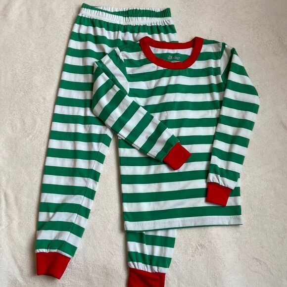 Shelry Christmas Holiday Green White Striped Pajama Set. Size: 6. Excellent used condition. Worn once and washed. Very snug - fitting, slim fit.