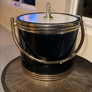 Shelton Vintage Black and Gold Ice Bucket with Handle