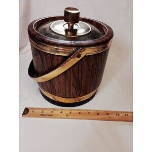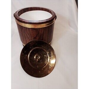 Shelton Ware NYC Vintage Wood Look Gold Trim Ice Bucket Needs TLC Worn