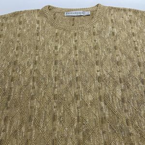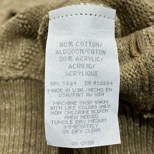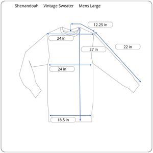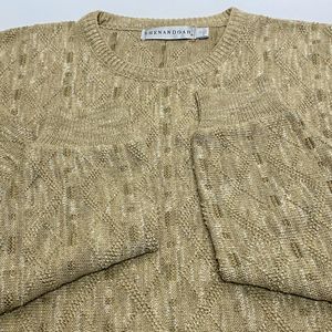 This is a pre-owned vintage Made in the USA Men's Shenandoah Crewneck Sweater in a Size Large. This sweater is in good condition with some wash wear, no stains, and no holes or damage. The sweater is brown in color with army green, tan, and white colors in the weave/pattern. It has an allover textured diamond pattern with small rectangles and squares. I encourage you to enlarge the photos to view small details and to review the measurements on photo #9 to determine fit. If you have any questions about this item, please ask!