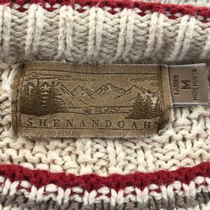 Shenandoah Women's Sweater Medium Embroidered Cardinal Beige Crochet Knit