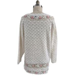 Shenanigans Hand Knit Cotton Scallop Stitch Rosette Sweater 3D L Cottage Core