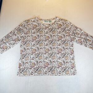 Shenanigans Shirt Woman's XL Floral Crew Neck 3/4 Sleeves Browns & White Fall