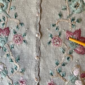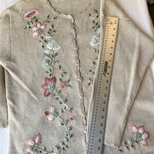 Shenanigans Women Beautiful Knit Jackets size L Natural Beige Floral Embroidery