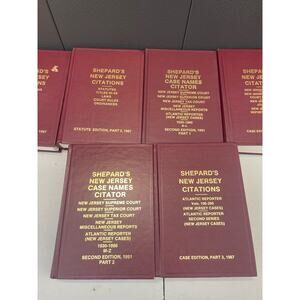 The Shepard's New Jersey Citations (1987) 8-volume set is a valuable collection of legal references specifically focused on New Jersey. These volumes are likely to be packed with important case law, statutes, and regulations relevant to the state, making them a valuable resource for legal professionals and students alike. The set is organized in a comprehensive manner, allowing users to easily access the information they need for their research or practice.