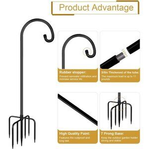 🧿Special Design : Five garden pole prongs base designs make shepherd’s hook holder to maintain a fixed and upright condition which is more stable and firmer than ordinary 2 or 3 prong shepherd pole. When you use it, it will be firm to the ground without easily falling down or bending.