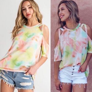 Sherbet Neon Baby French Terry Tie Dye Cold Shoulder Top Sizes Small & Med NWT