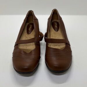 The Sherese Mary Jane has an adjustable hook and loop fastening system making it the perfect flat for walking. The removable footbed is cushioned and has arch support for all day comfort. See photos for condition and details.