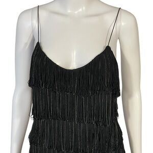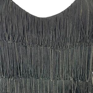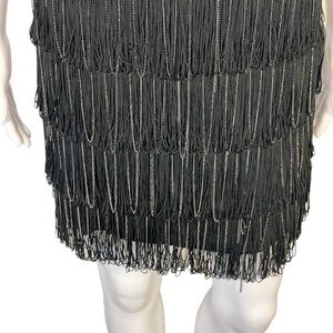 Sheri Bodell Black Silk Flapper Fringe Gold Chain Sleeveless Cocktail Dress Sz S