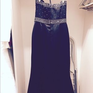 Black full length, strapless, size 10, mermaid style, beading on top, worn once
