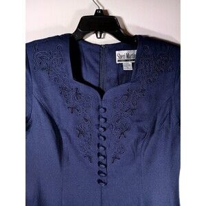 Sheri Martin Indigo Blue Short Sleeve Cloth Button Vintage Maxi Dress Size 12