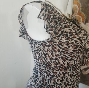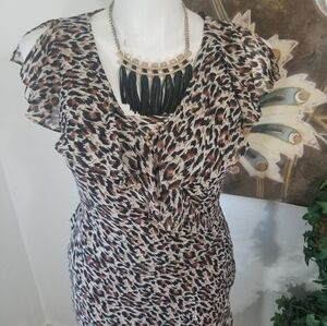 VTG Sheri Martin New York Leopard Animal Print Tiered Ruffle Midi Dress Sz 12. Please see all photos for details. Fully lined. Fitted and flattering. No signs of wear. No fading no holes no stains.