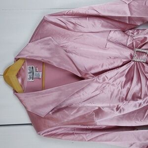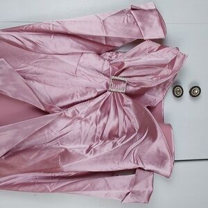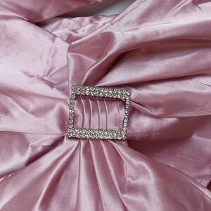 PINK SATIN SHINY BLING RHINESTONES BUCKLE ELEGANT TOP PARTY HOLIDAYS FESTIVE COCKTAILS EVENING WEAR WEDDING