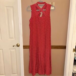 Sheri Martin vintage Polka Dot Dress Sleeveless Maxi Back Cut Out Dress Red White size 10. Button. Front with collar. Strappy back cutout. Good condition