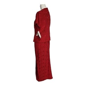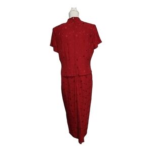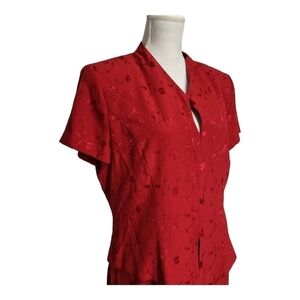 Sheri Martin Red Dress Floral Christmas Modest Special Occasion Size 14