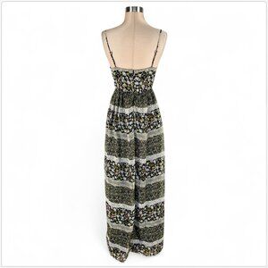 DETAILS: Fully lined. Back zip close. Empire waist maxi tank or flowy slip style dress with adjustable straps. Pretty black floral print. Bohemian festival vibe.