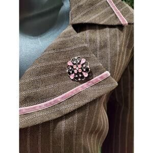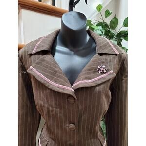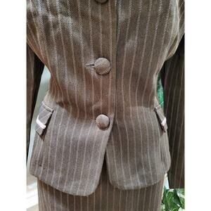 Sheri Martin Women Brown Polyester Single Breasted Jacket & Skirt 2 Pc's Suit 12.