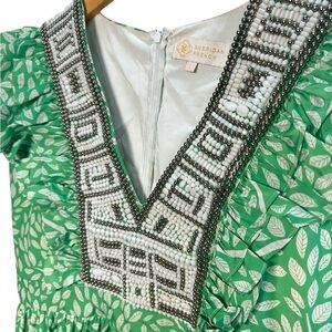 Sheridan French | Beaded Floral Ruffle Elegant Maxi Dress Quiet Luxury Sz Large
