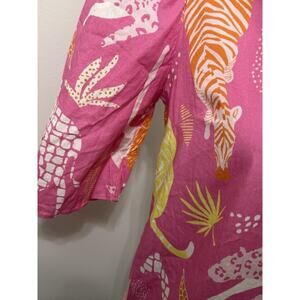 Sheridan French Natalie Blouse Pink Whimsical Island Sunrise Animals Safari XS