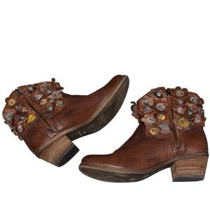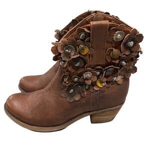 Sheridan Mia Brown Leather Floral Applique Side Zip Booties Boots size 37