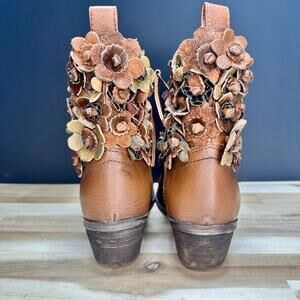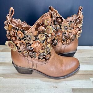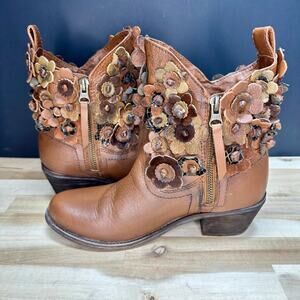 Sheridan Mia Women’s Leather Ankle Boots 36/6 Brown Floral Appliqué Western Boho