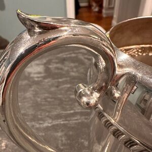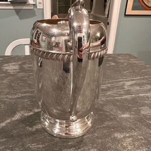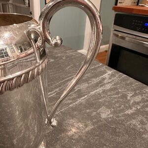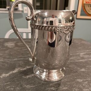 Sheridan Silver Co. silver plated water pitcher. Use it for dinner service or for fresh cut flowers! Beautiful shine, handle & design around the top.