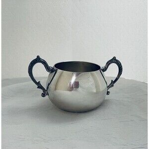Sheridan Silver On Copper Open Sugar Bowl With Ornate Handles 2.5" Tall