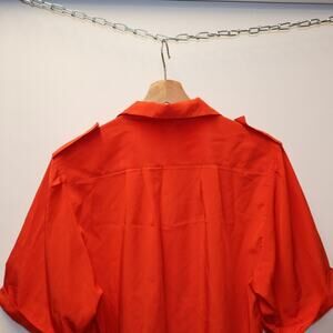 Sheridan Square Red Blouse Shoulder Tabs Short Sleeves Button Front 100% Polyester Size 16