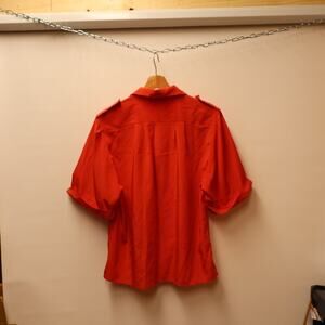 Sheridan Square Red Blouse Shoulder Tabs Short Sleeves Button Front Size 16