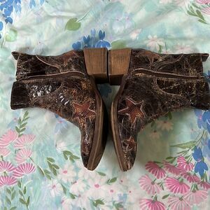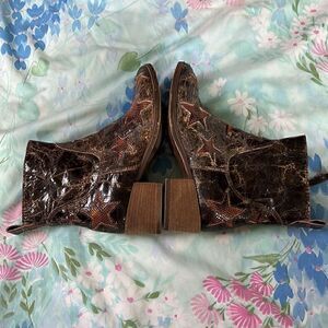 In excellent condition. Stars are cut out with snakeskin textured material. Main boot is distressed leather. Inside zipper. Soles are in excellent condition.
