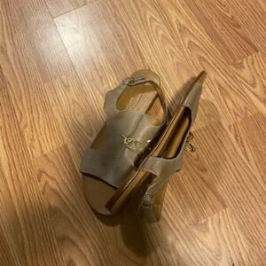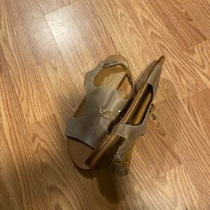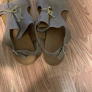 Sheridian | Mia Taupe Tia Leather sandals with Glided Bow, size 42/10