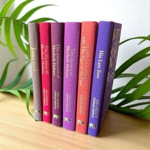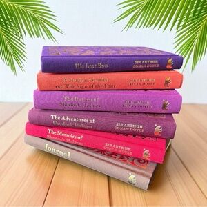 Beautiful clothbound edition set by Arcturus Publishing featuring gold-foil decorative covers and spines. Includes 5 classic Sherlock Holmes works plus a matching journal. Each book features high-quality paper, decorative endpapers, and ribbon bookmarks.
