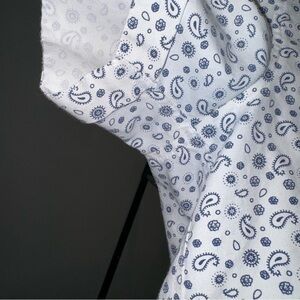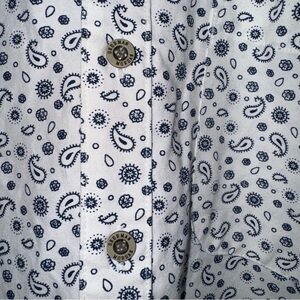 Sherman Morgan Men’s White and Blue Paisley Button Up Shirt Size Large