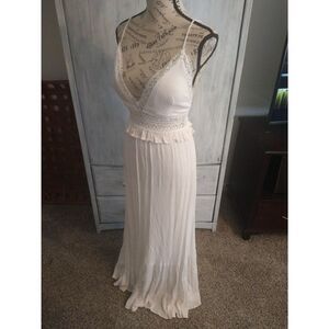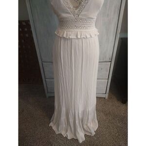 Shero Lace Ruffled maxi sleeveless dress Md White Boho Cottage Core Beachy