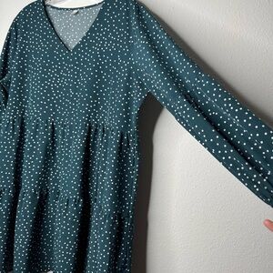 Sherosa Dark Green and Polka Dot Tiered Peasant Mini Short Dress Womens Size XL