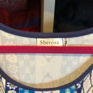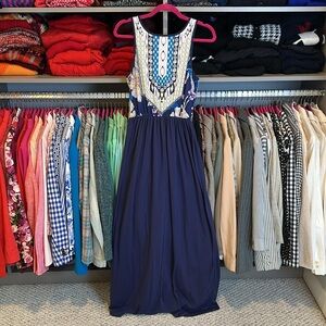 Sherosa navy/yellow/white print sleeveless elastic waistband maxi dress size M