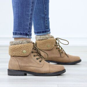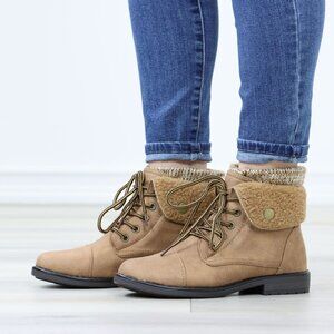 Sherpa Ankle Lined Combat Flat Heel Ankles Boots Tan Faux Leather