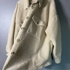 Keywords: fall winter cozy CabinCore western blanket jacket barn coat chore coat vibes Sherpa Shacket cuddly trendy oversized neutral cabin winter layer neutrals tan soft fuzzy winter fall layer oversized 70’s western romance