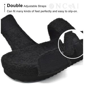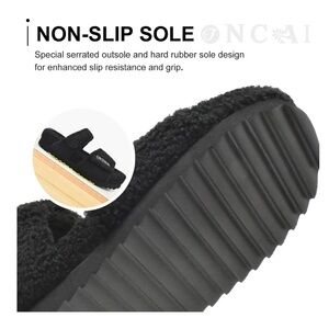Sherpa Faux Fur Slide w/ Memory Foam Footbed & Rubber Soles House Shoes/Slides🖤