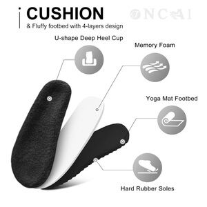 Deep Heel Cup:The special Ergonomics design of the footbed is adopted to support your feet effectively and comfortably. The deep heel cup help correct the leg shape and fit your feet,then prevents falling while walking and reduce muscle fatigue.