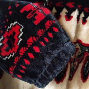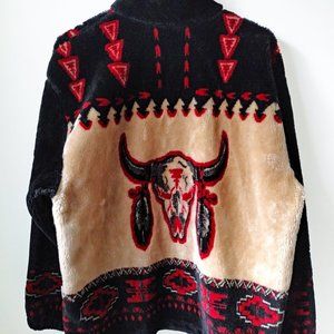 Sherpa Fleece Tribal Jacket Native American Faux Mouton Fur Zip Vintage Fleece