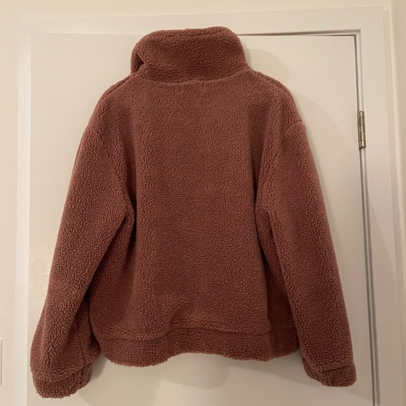 Perfect condition Sherpa jacket. Has a front zip. It’s a pink/mauve color, even prettier in person.