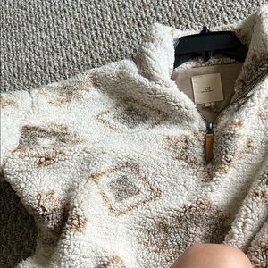 Soft sherpa jacket with cream and tan hues. Super cozy and cute for fall or winter