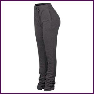 • Style: Solid color joggers with a drawstring elastic waist, side pockets, and stacked, ruched bootcut legs.