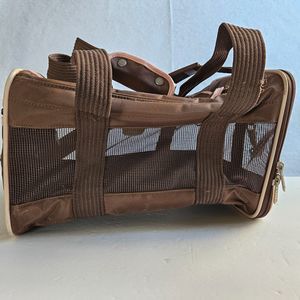 Sherpa Original Pet Carrier Small 14x9x8.5 Brown Pink Travel Bag Portable Kennel