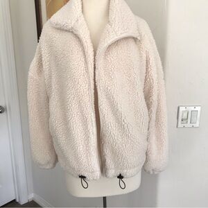 So soft and warm. This adorable set includes zippered jacket and tie waist joggers.