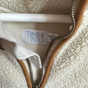 Time & tru brand animal leopard cheetah print trim with pockets sweater quarter zip pullover cream