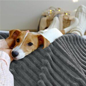 Sherpa Throw Blanket Grey Fleece Plush Cozy Soft Warm Striped Couch Blanket