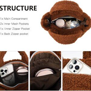 Sherpa Tote Bag Fuzzy Plush Crossbody Purse Women Winter Handbag
